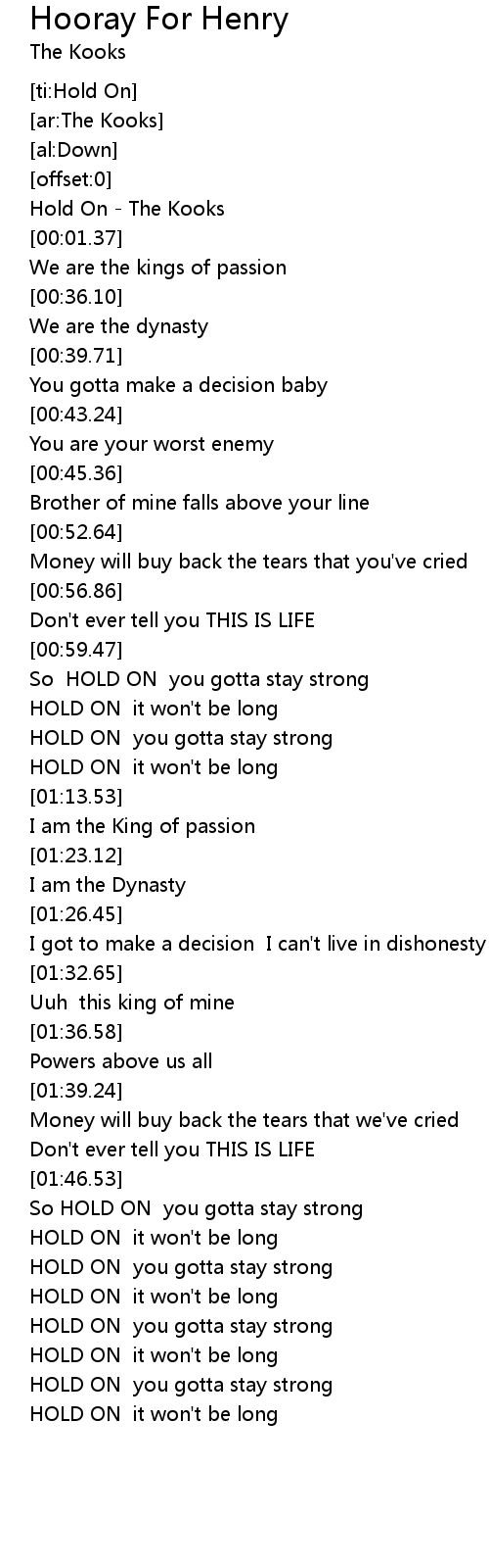 | [00:00.28] | Hold On - The Kooks |