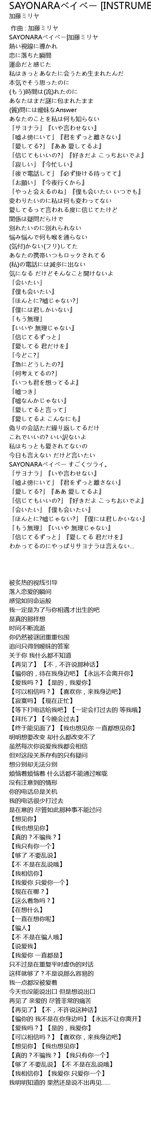 | [00:00.730] | SAYONARAベイベー|加藤ミリヤ |