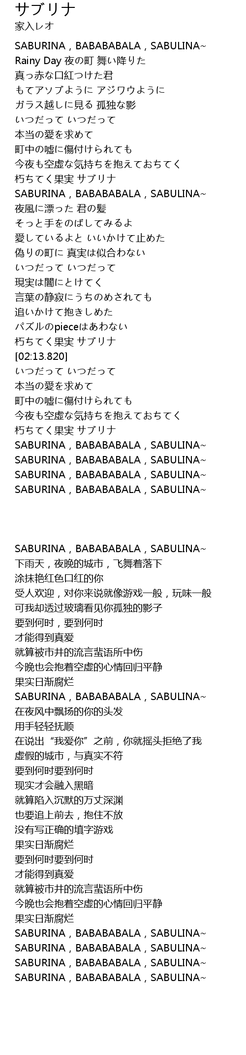 | [02:54.392] | SABURINA,BABABABALA,SABULINA~ |