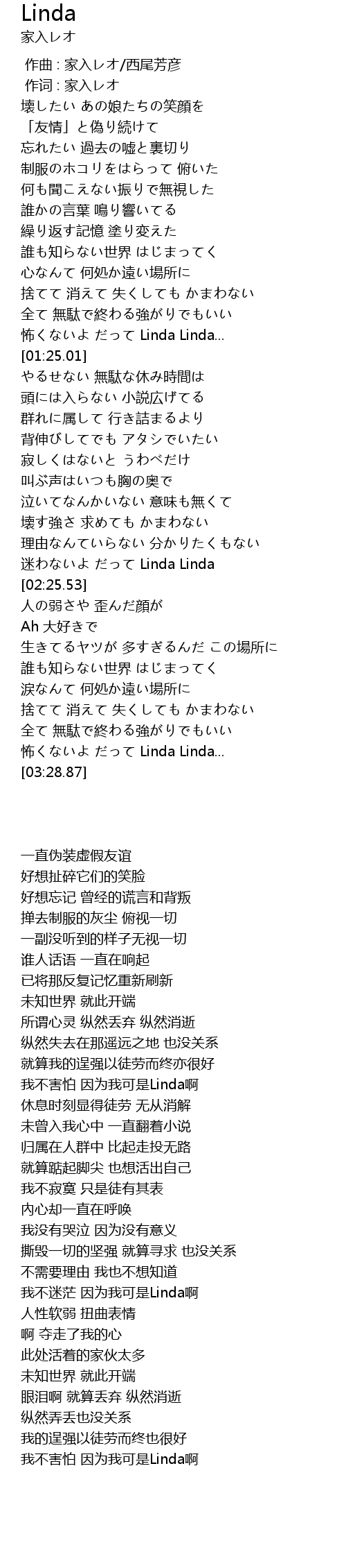 | [01:15.21] | 怖くないよ だって Linda Linda... |