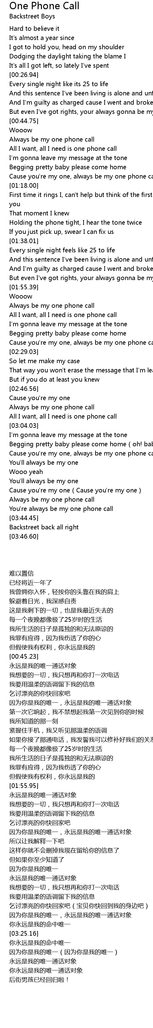 | [03:15.57] | Cause you're my one, always be my one phone call |