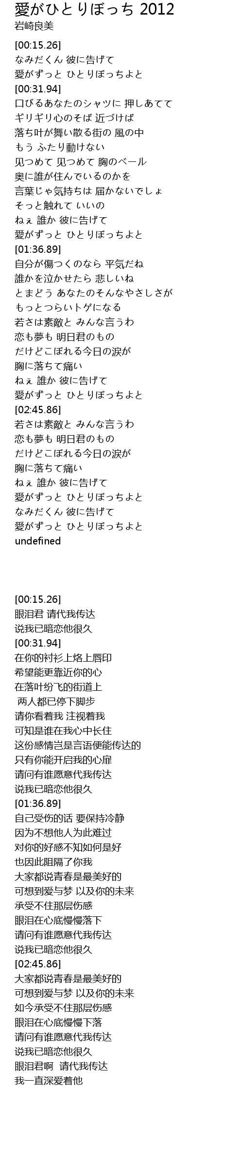 | [00:23.47] | 愛がずっと ひとりぼっちよと |