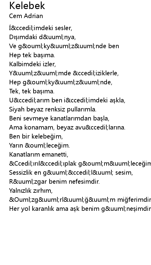 | Ben bir kelebe im, | |