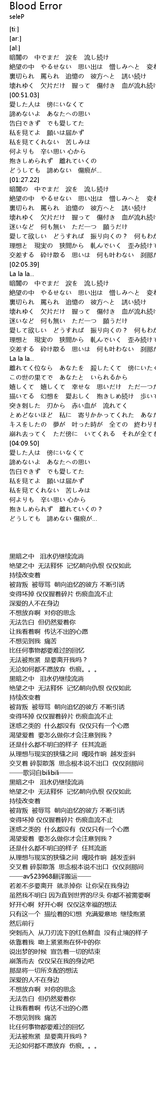 | 歌曲 | Blood Error |