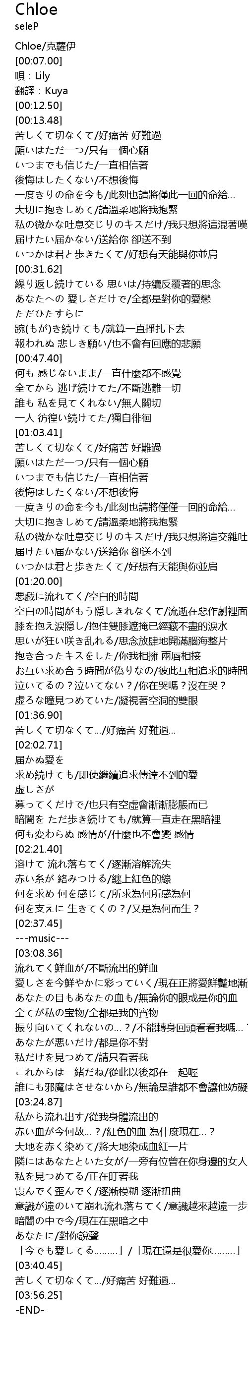 | [03:41.05] | 苦しくて切なくて.../好痛苦 好難過... |