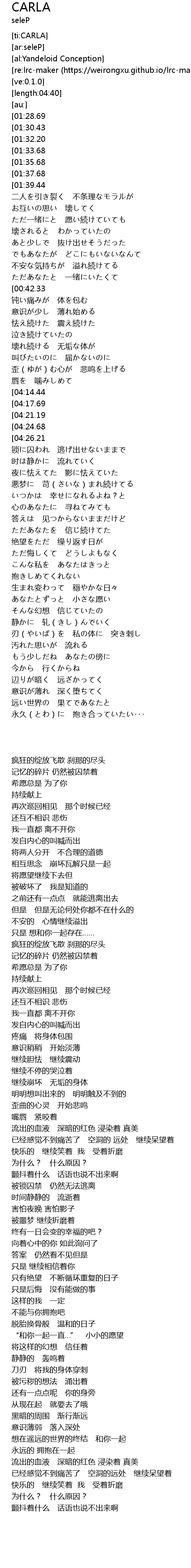 | [02:13.12] | 流出的血液 深暗的红色 浸染着 真美 |