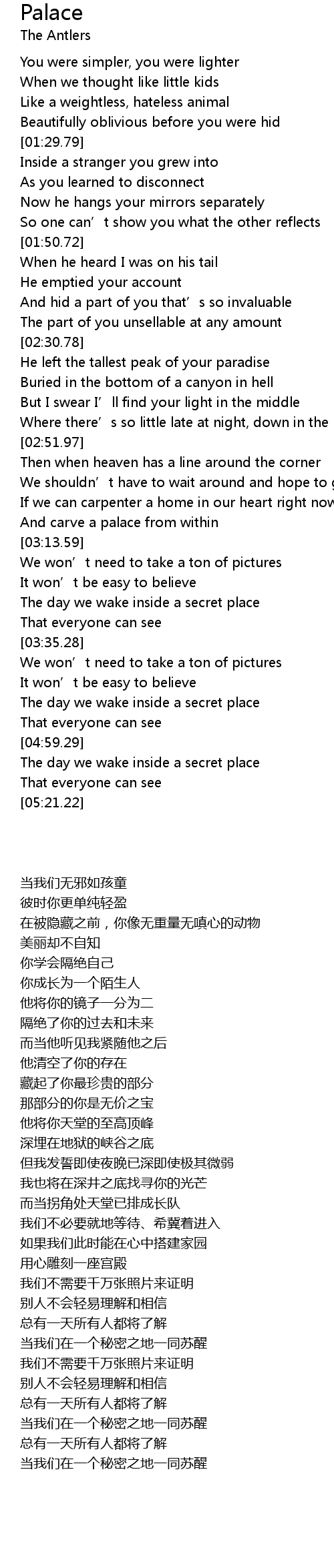 | [04:55.35] | 当我们在一个秘密之地一同苏醒 |