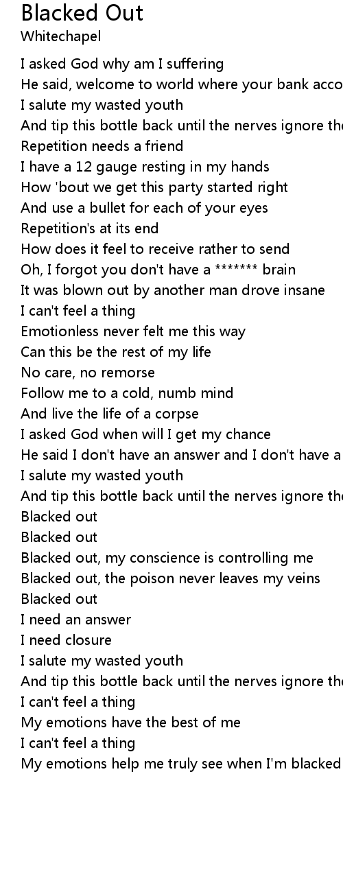 Blacked out, the poison never leaves my veins |