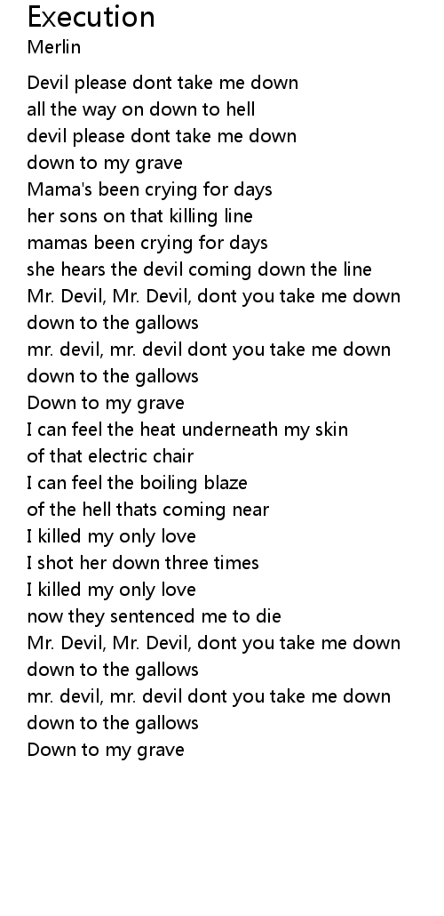 mr. devil, mr. devil dont you take me down |