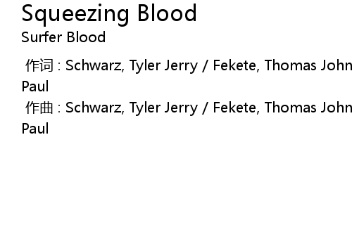 | [00:00.000] | zuò qǔ : Schwarz, Tyler Jerry Fekete, Thomas John Pitts, John Paul |