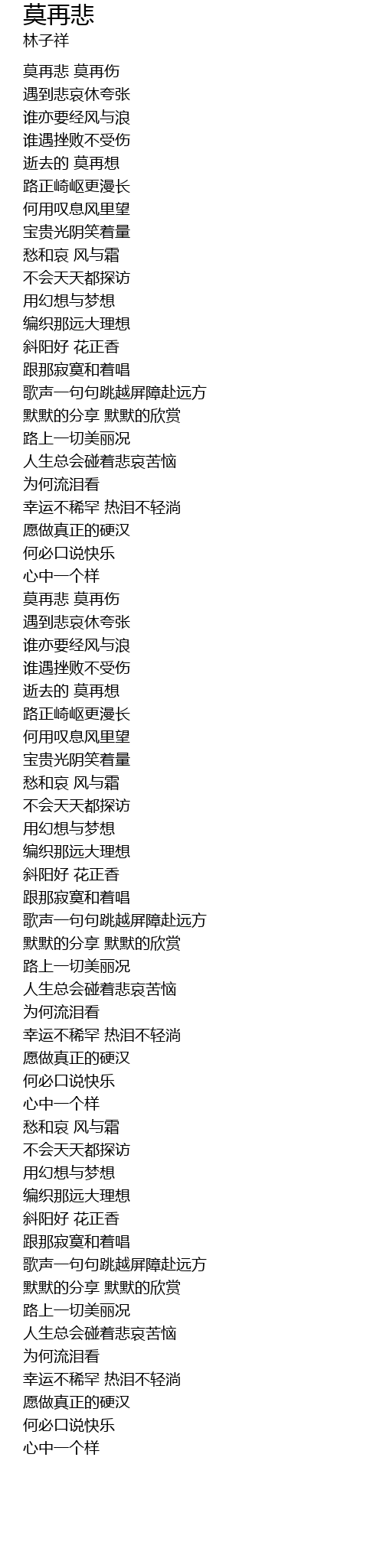 | [01:21.12] | mò zài bēi mò zài shāng |