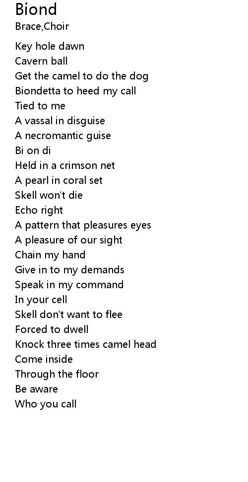 | [01:12.59] | Biondetta to heed my call |