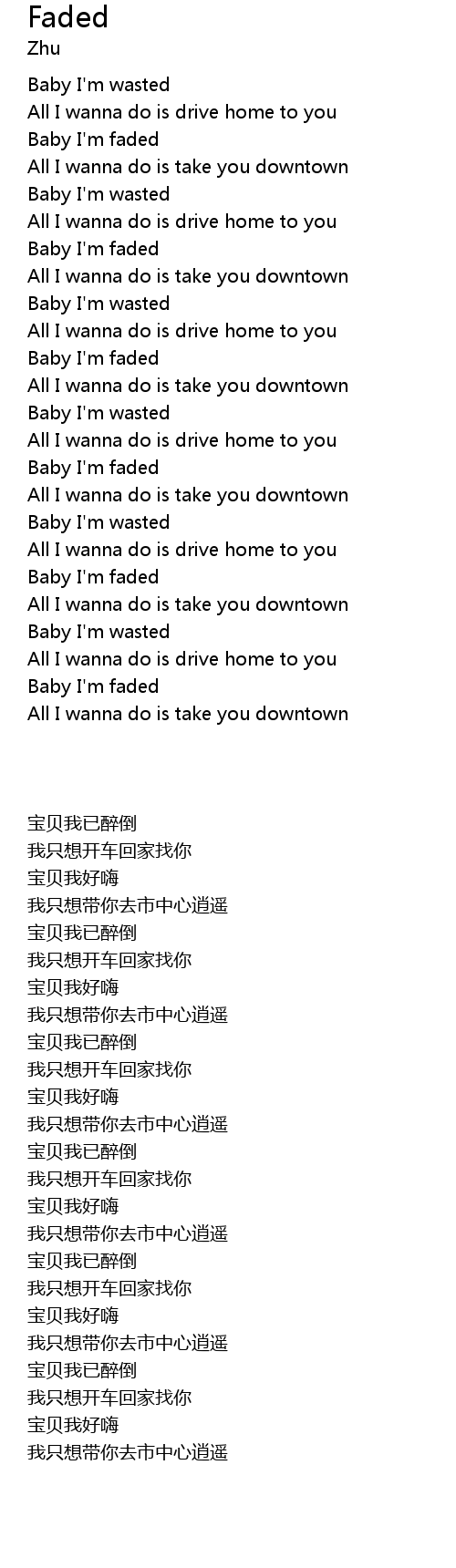 Baby I'm faded |