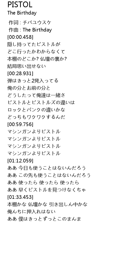 | [01:07.018] | マシンガンよりピストル |
