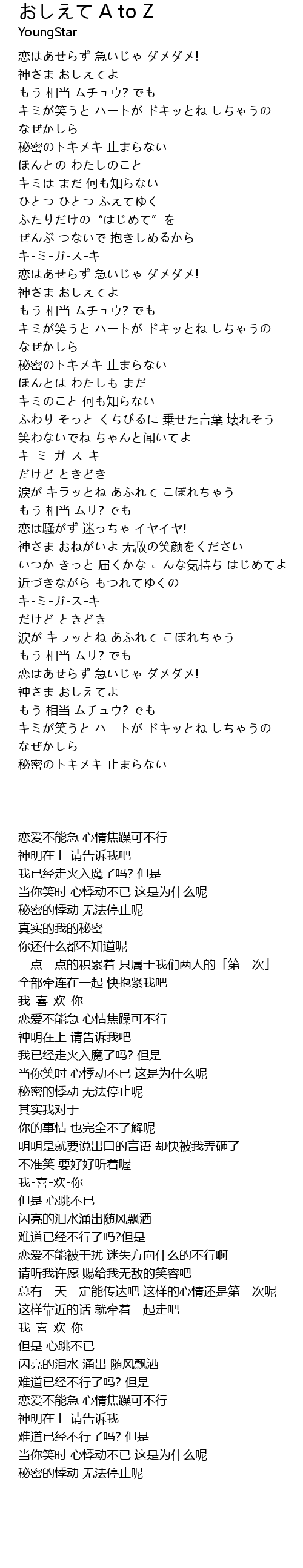 | [00:20.07] | 秘密のトキメキ 止まらない |