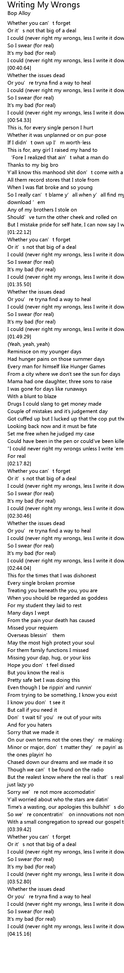 | [02:13.64] | "I could never right my wrongs unless I write 'em down for real" |