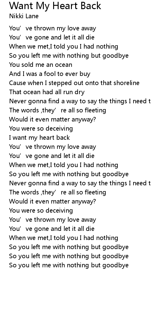 | I want my heart back | |