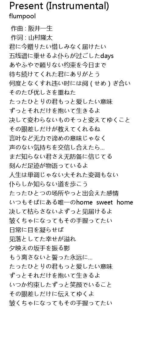 | [02:36.728] | いつもそばにある唯一のhome sweet home |