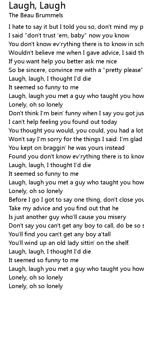 Laugh, laugh you met a guy who taught you how it feels to be |