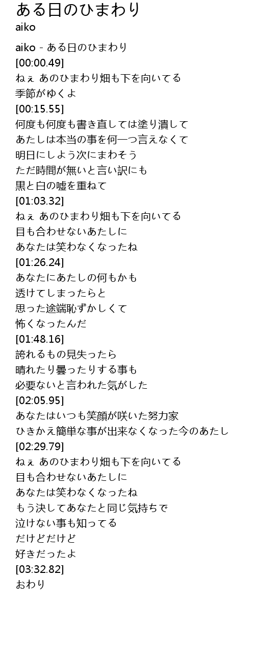 | [00:00.00] | aiko - ある日のひまわり |