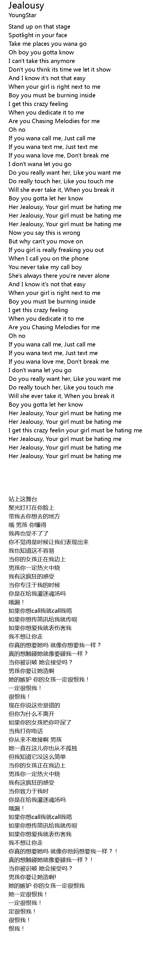 Her Jealousy, Your girl must be hating me |
