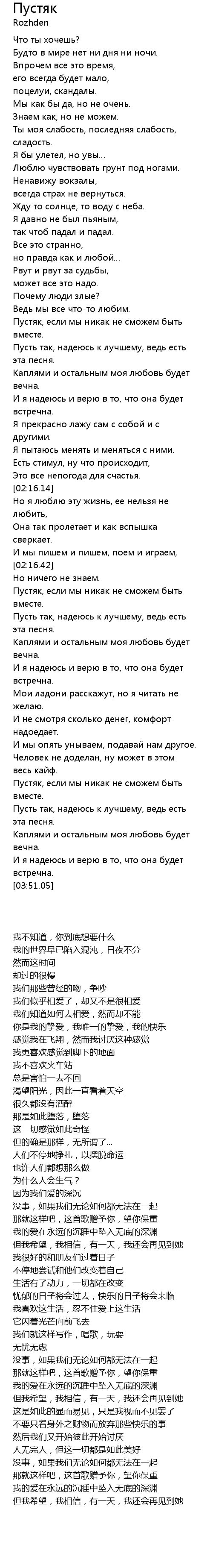 | 歌曲 | Пустяк |