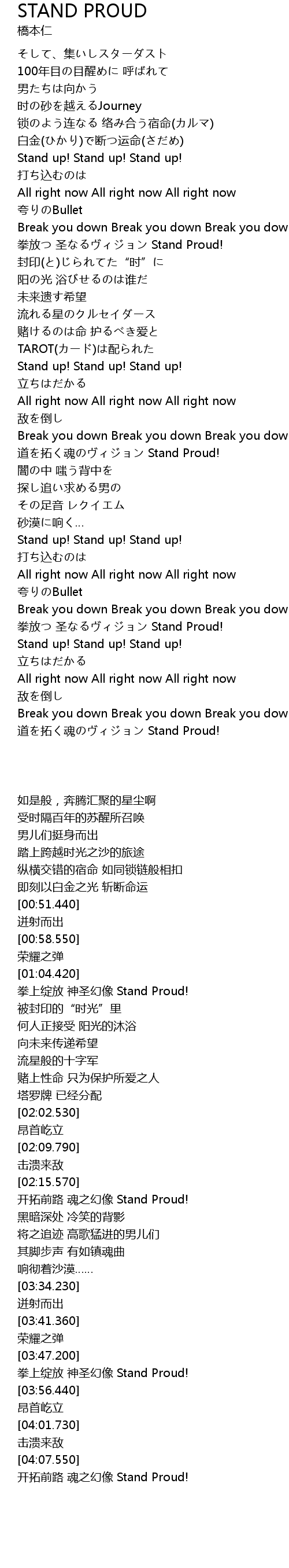 | [03:49.720] | 拳放つ 圣なるヴィジョン Stand Proud! |