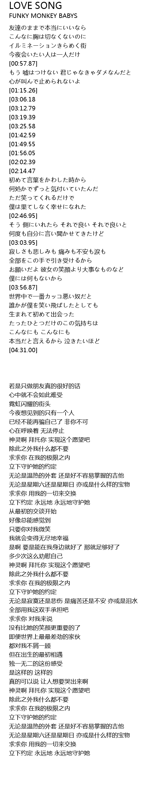 | [03:44.76] | お願いだよ 彼女の笑顔より大事なものなど |