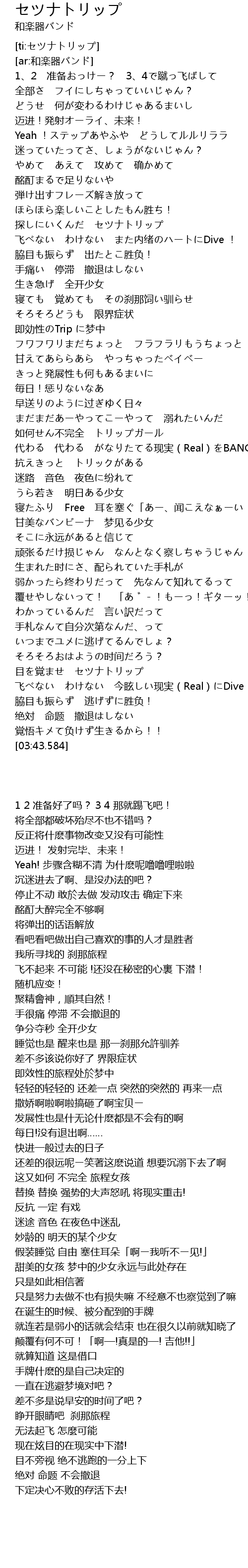 | [03:26.873] | 目を覚ませ セツナトリップ |