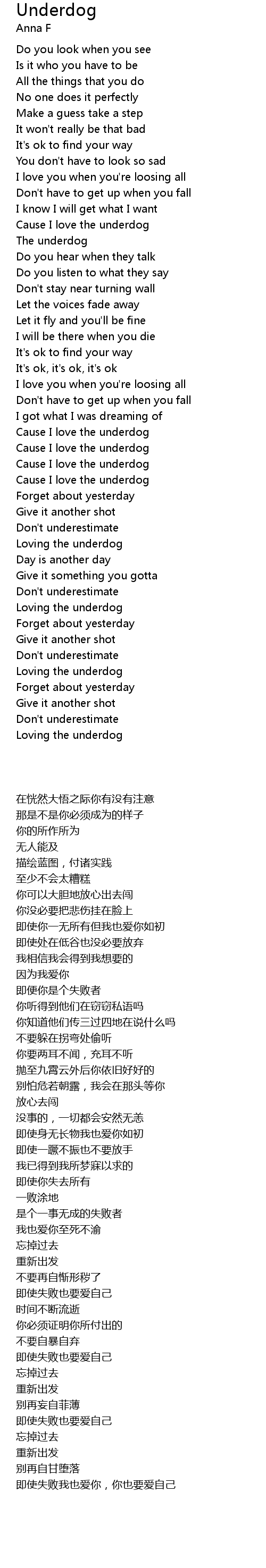 Cause I love the underdog |