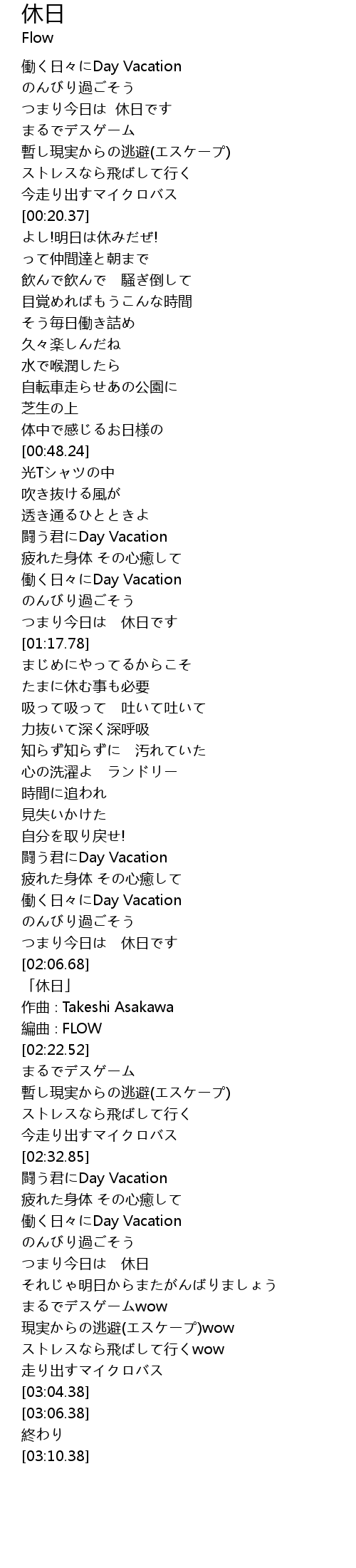 | [02:26.01] | 暫し現実からの逃避(エスケープ) |