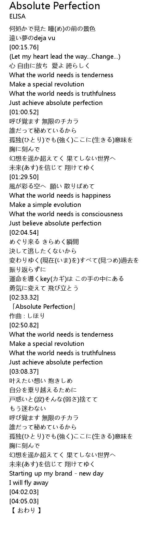 | [01:59.55] | Just believe absolute perfection |
