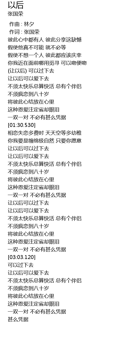 | [03:34.100] | 不须太快乐总算快活 总有个伴侣 |