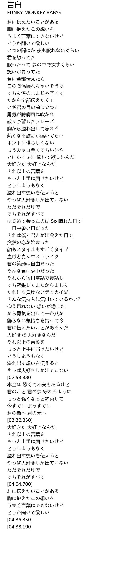 | [02:34.390] | 君に伝えたいことがあるんだ |