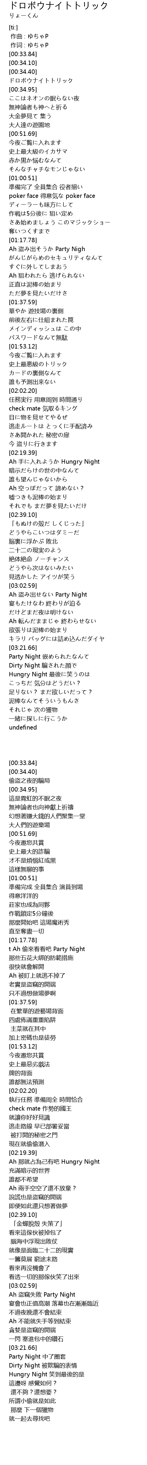 | [00:34.70] | ドロボウナイトトリック |