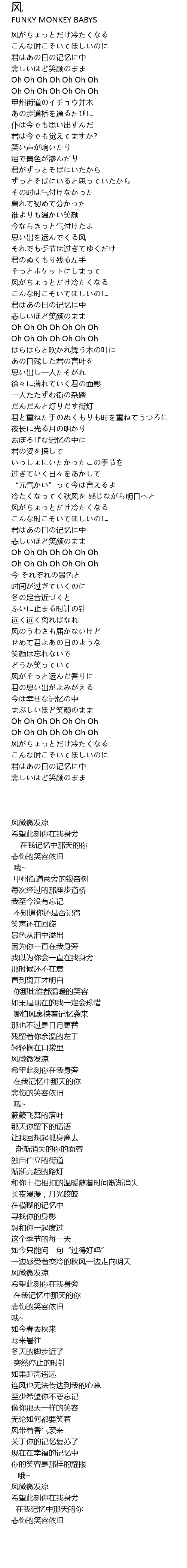 | 歌曲 | 风 |