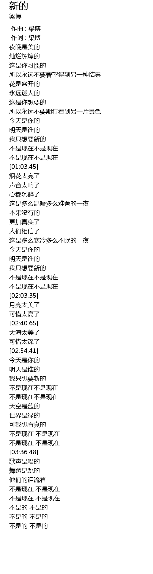 | [01:53.14] | wǒ zhǐ xiǎng yào xīn de |