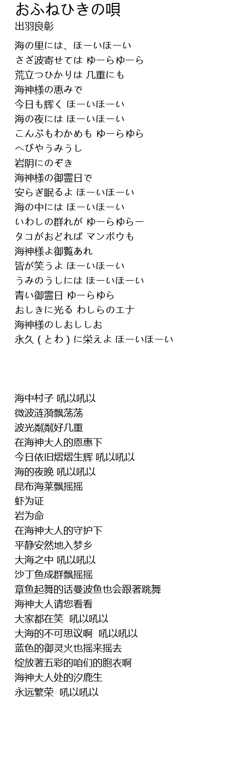| 歌曲 | おふねひきの唄 |