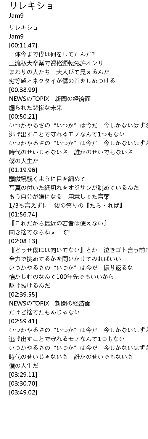 | [01:51.61] | 1/3も言えずに 後の祭りの『たら・れば』 |
