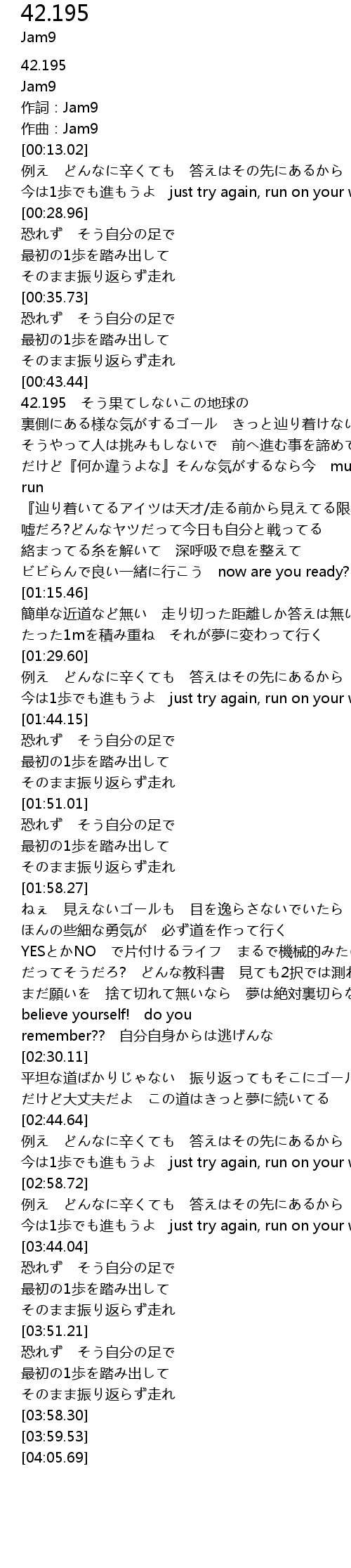 | [00:45.35] | 42.195 そう果てしないこの地球の |