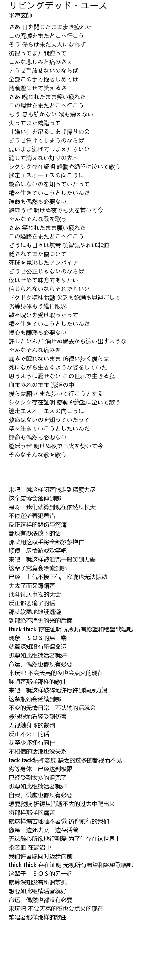 | [02:58.57] | 痛みで眠れないまま 彷徨い歩く僕らは |