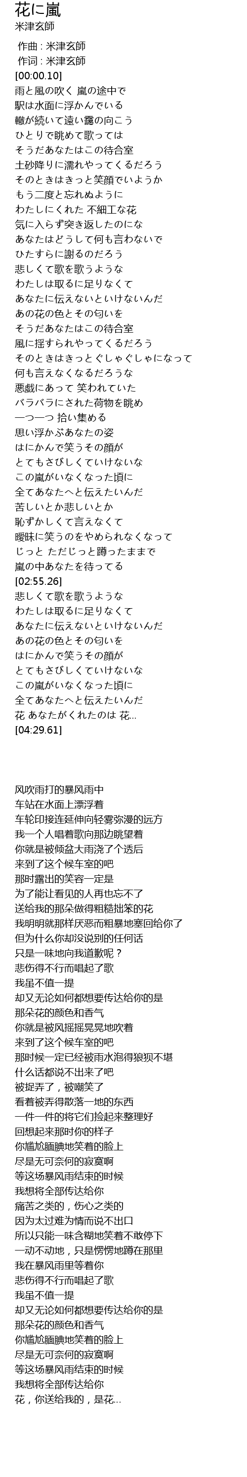 | [00:52.19] | わたしにくれた 不細工な花 |