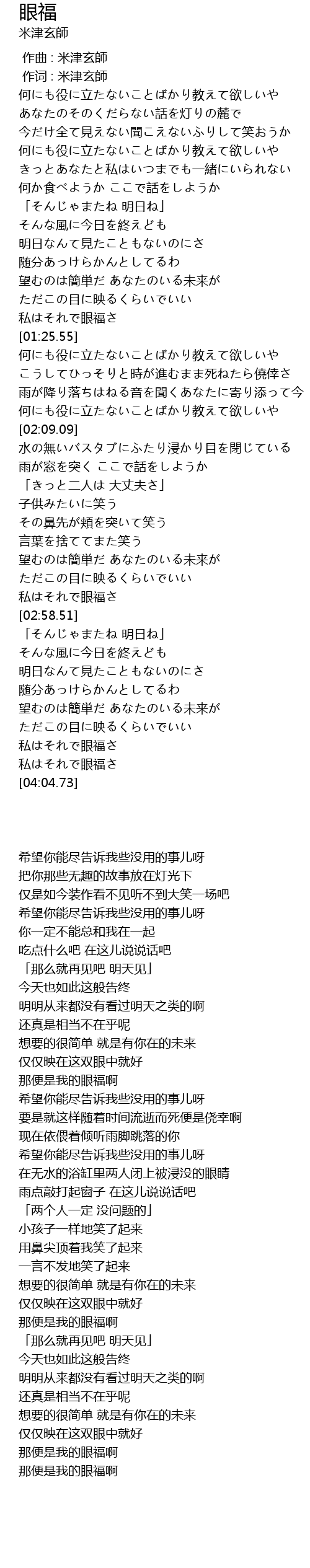 | [00:01.00] | 作词 : 米津玄師 |