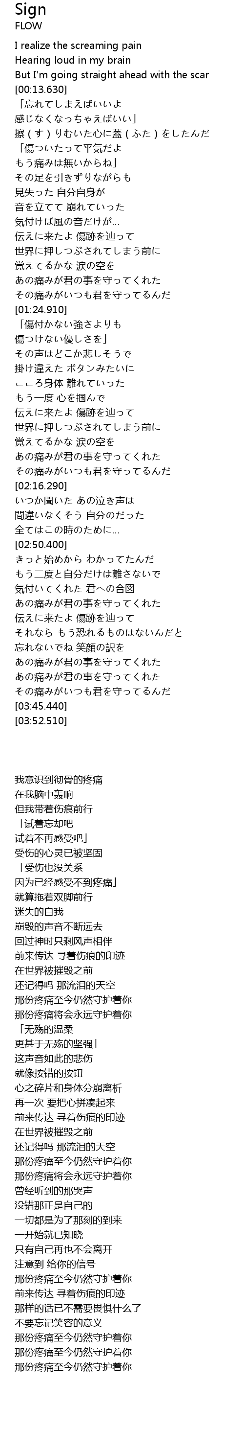 | [03:13.660] | 伝えに来たよ 傷跡を辿って |