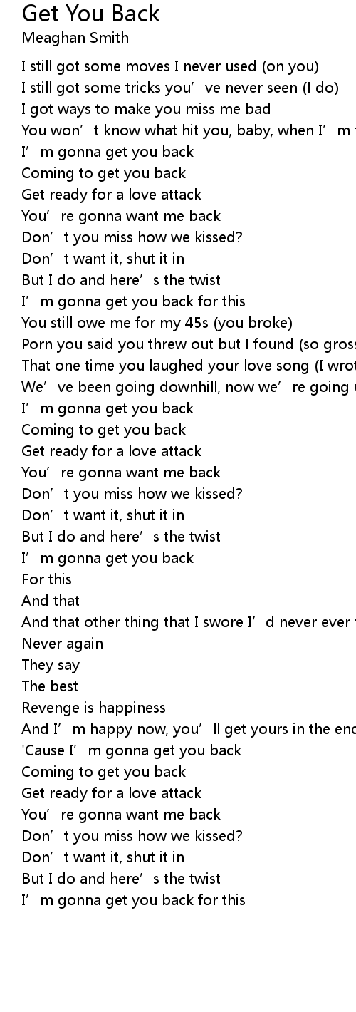 | [01:53.82] | ' Cause I' m gonna get you back |