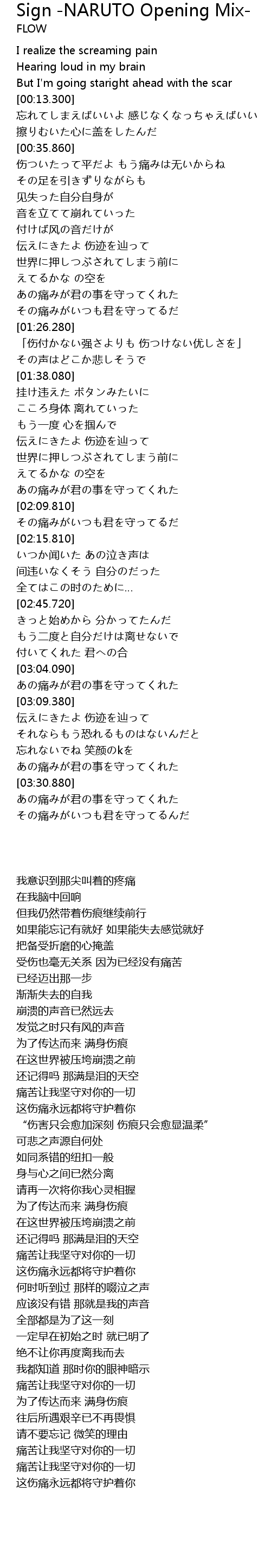 | [03:09.900] | 伝えにきたよ 伤迹を辿って |