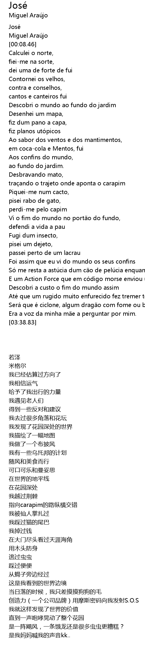 | [00:57.46] | Descobri o mundo ao fundo do jardim |