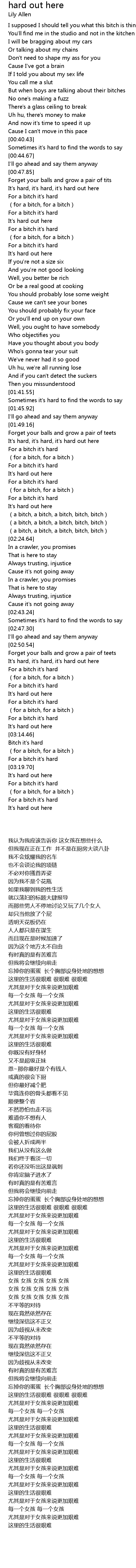 | [00:59.90] | For a bitch it's hard |