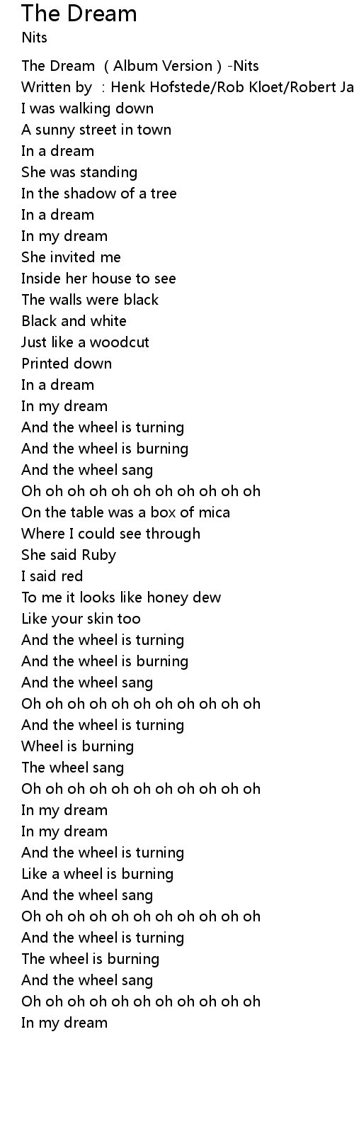 | [00:00.43] | The Dream (Album Version)-Nits |