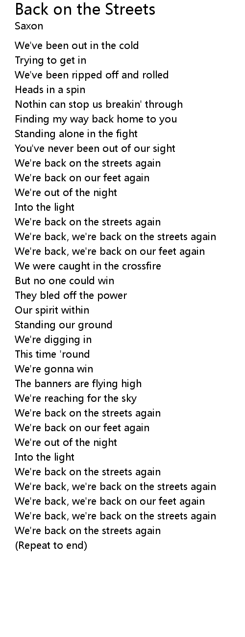 We're back, we're back on the streets again |